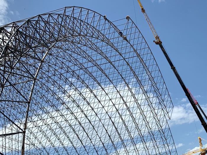 (2)网架加工前应对现场尺寸进行复测,确认无误后方可进行加工、安装;网架制作、运输、安装应遵守《空间网格结构技术规程》JGJ7-2010、《钢网架崇明螺栓球节点》JG/T 10-2009、《钢网架崇明螺栓球节点用高强度螺栓》 GB/T 16939-2016、《崇明钢结构崇明工程崇明施工规范》 GB50755-2012、《崇明钢结构崇明工程崇明施工质量验收标准》 GB50205-2020。